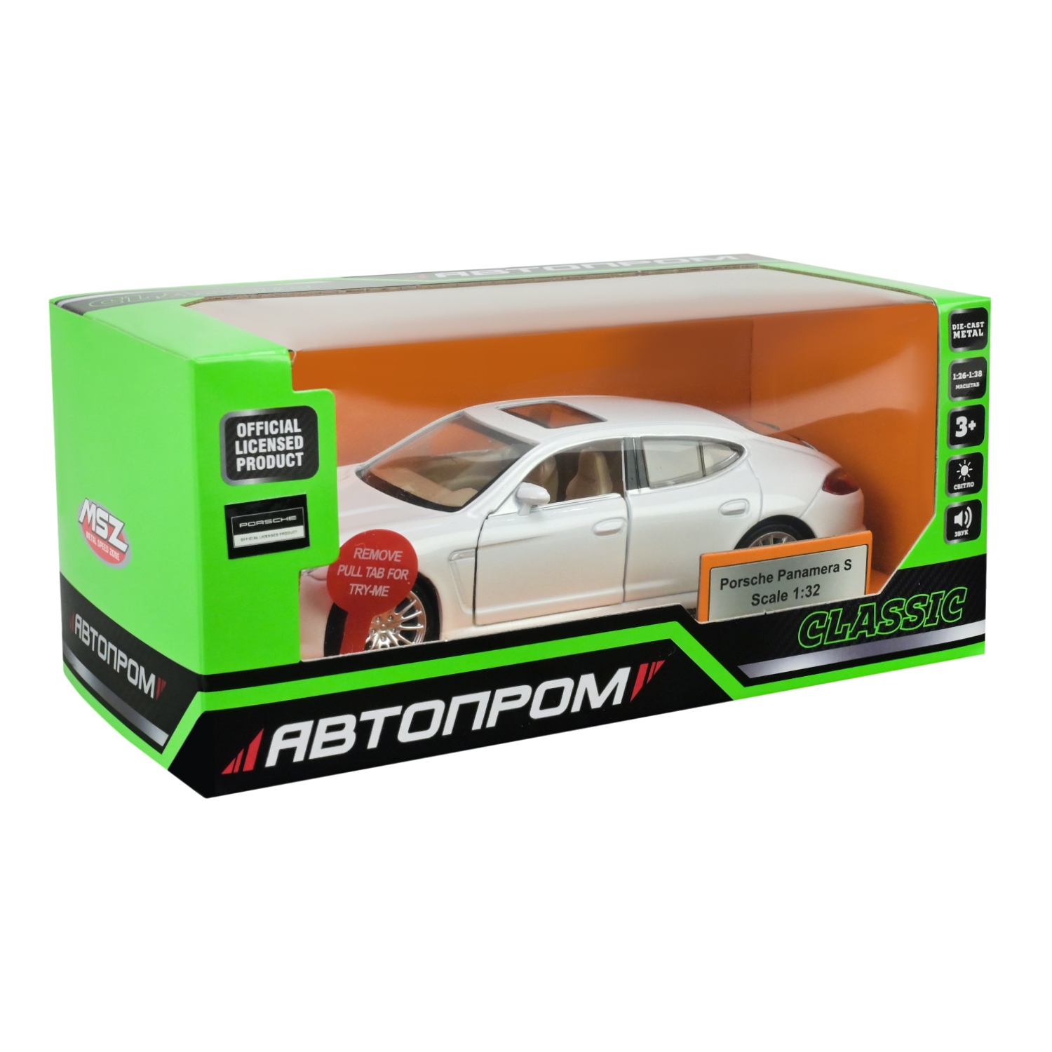 Машина мет. АВТОПРОМ арт. 68344 (48шт/2),1:32 Porsche Panamera S ,батар, світ.,звук,відкр..двері, короб. 18*9*9см