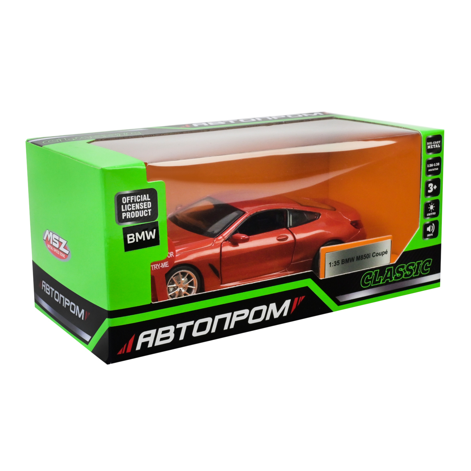 • Масштаб машинки 1:35 – удобный размер, подходящий как для игр в помещении, так и на улице.