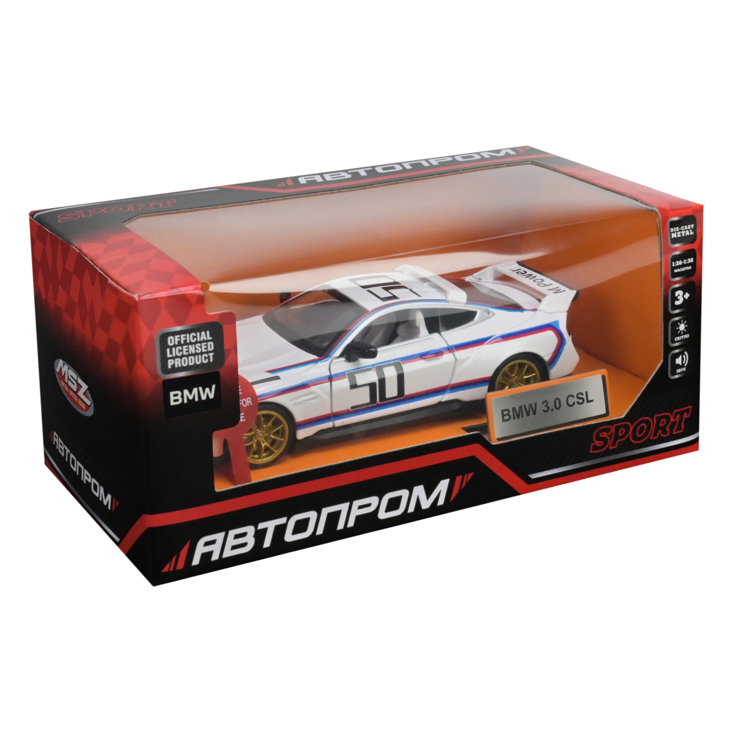 Машина мет. АВТОПРОМ арт. 68732A (48шт/2) 1:34 «BMW 3.0 CSL», батар, світ., звук, відкр.двері, короб.18 * 9 * 8 см