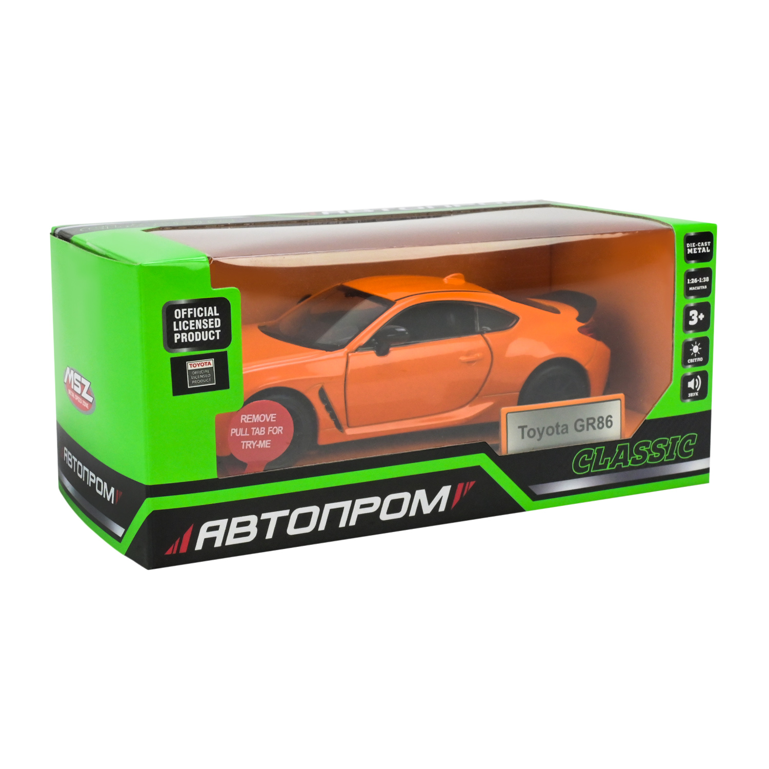 • Масштаб машинки 1:28 – удобный размер, подходящий как для игр в помещении, так и на улице.
