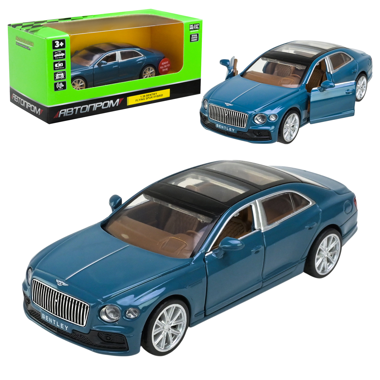 Машина металл 68722 (48шт/2) "АВТОПРОМ",1:38 "Bentley Flying Spur Hybrid",батар, свет,звук,откр.двери,в коробке 18*9*8 см
