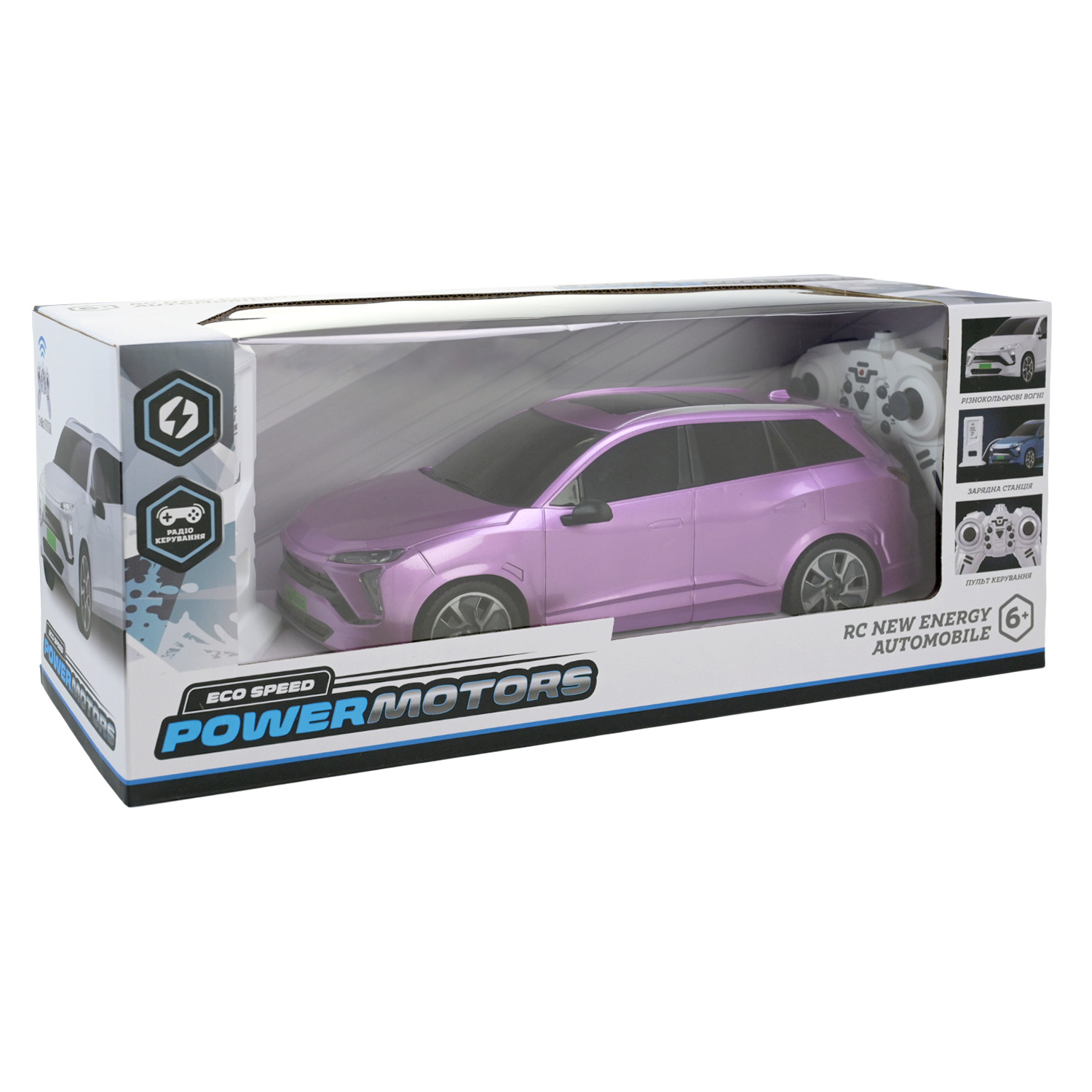 Машина р/к арт. PM3416 (18шт) «POWERMOTORS» 3 кольори акум,світло,звук,заряд.станція,у короб.43*17,6*15,6см