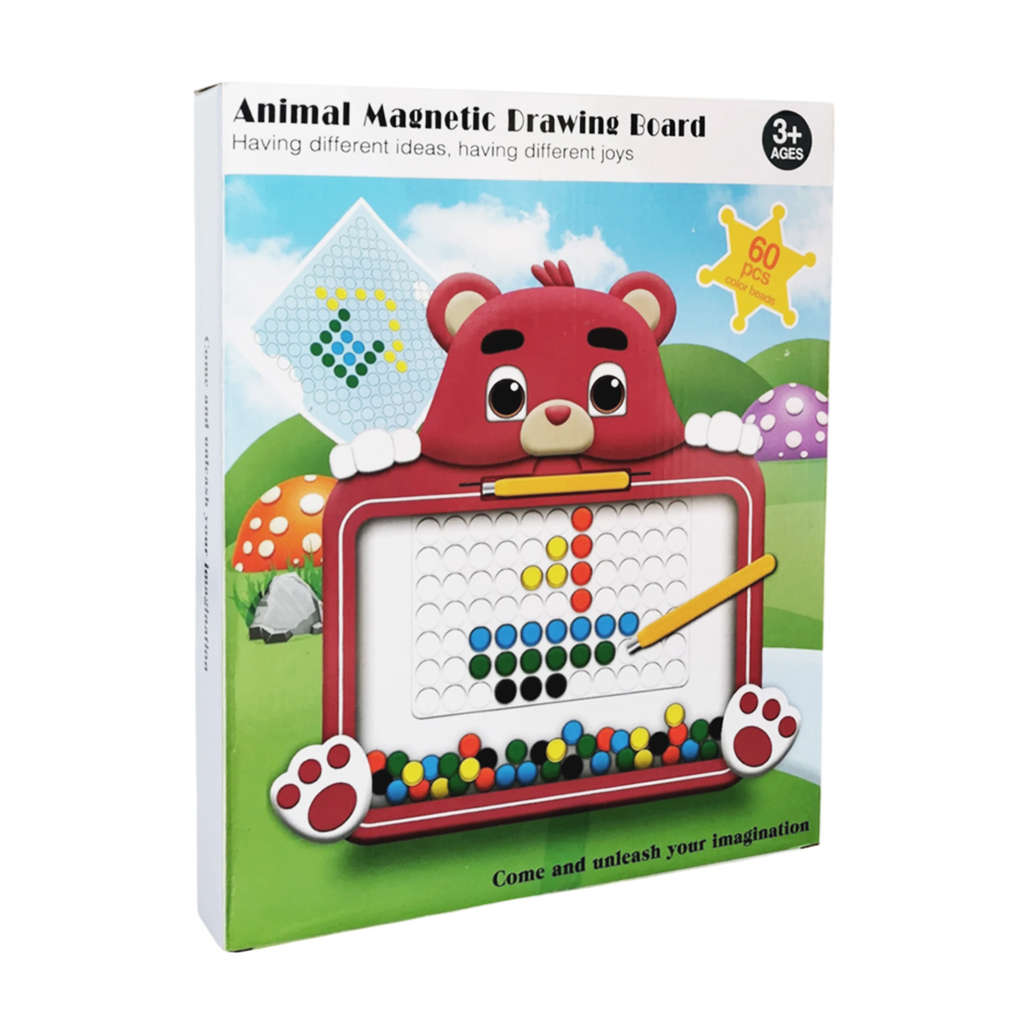 Мозаїка-магнитна арт. W6502 (100шт) дощечка р-р 29*27*3 см, магнітний стилус, 10 двохсторон.карток з малюнками, короб. 26*3*31см