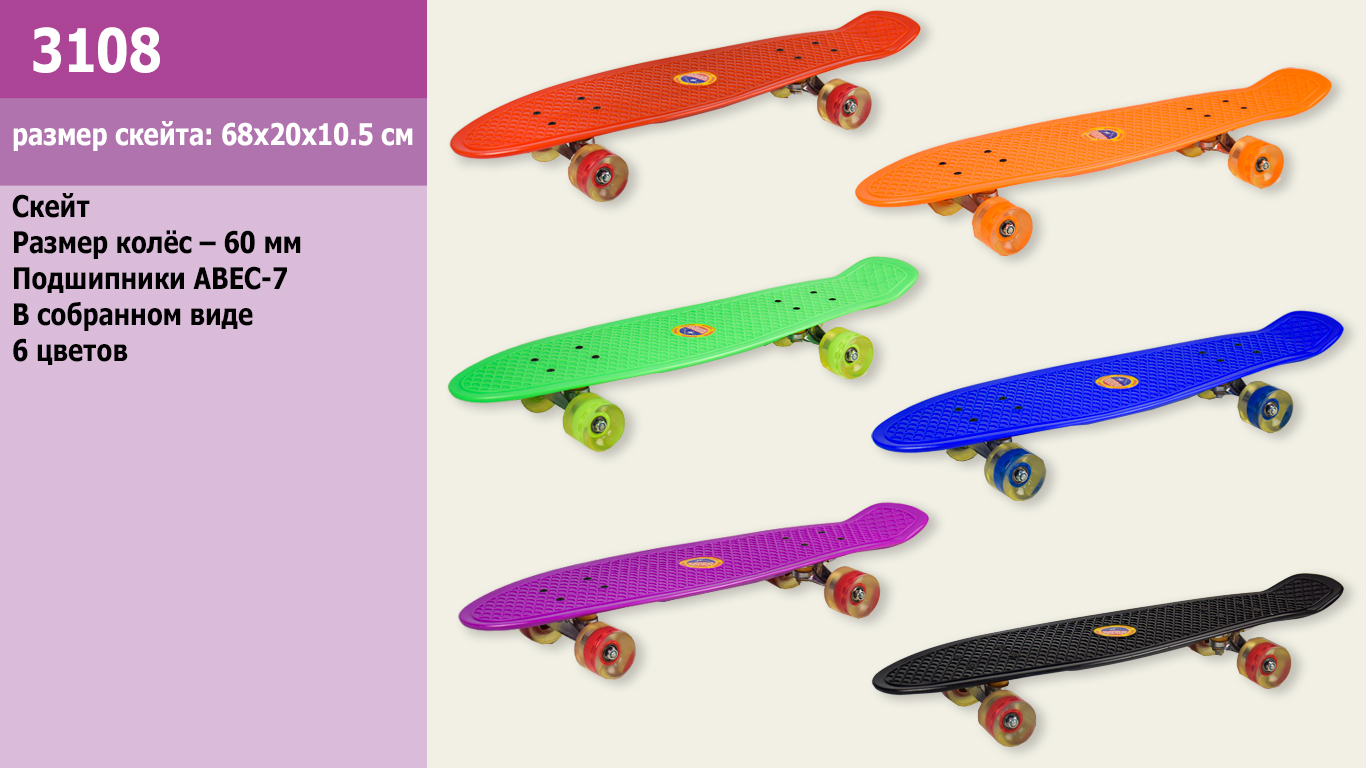 Пенни борд 3108 (6шт)колёса PU 5,5см, 68*20см