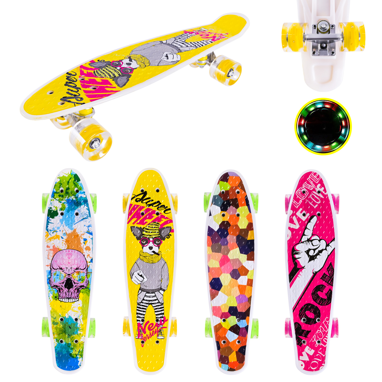 Пенні борд арт. SC25144 (8шт) 55*14,5 см колеса PU свiтяться, 4 види, у плівці