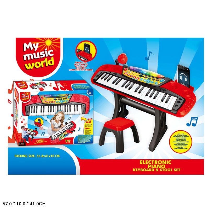 Піаніно арт. MY66313-L (16шт/2) з мікрофоном, на ніжках+стілець,р-р піаніно 55х19х45, р-р стілець23х21х17, у короб.56,8*41*10см