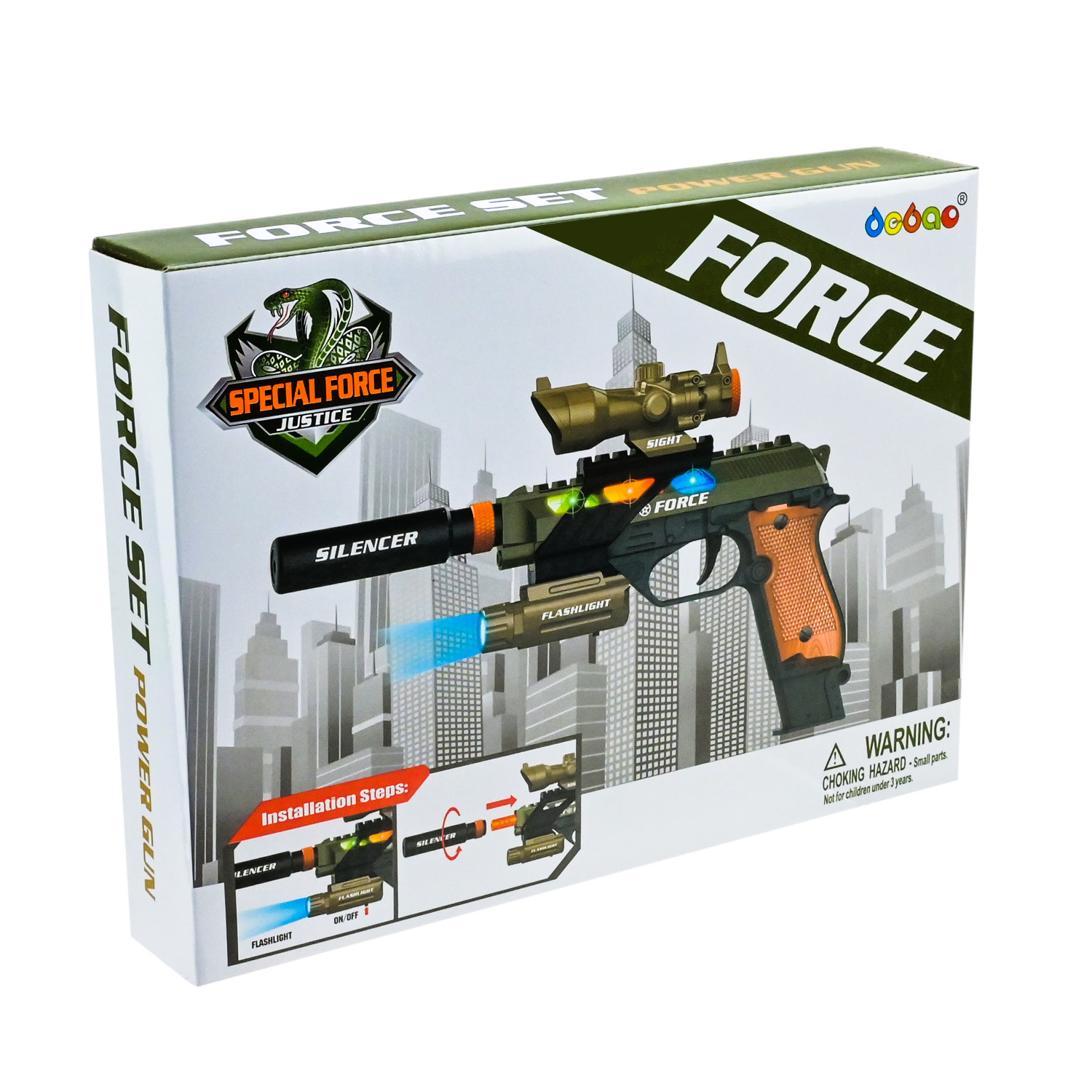 Пістолет арт. 36170 (96шт/2) батар. світло, короб. 23*17*4