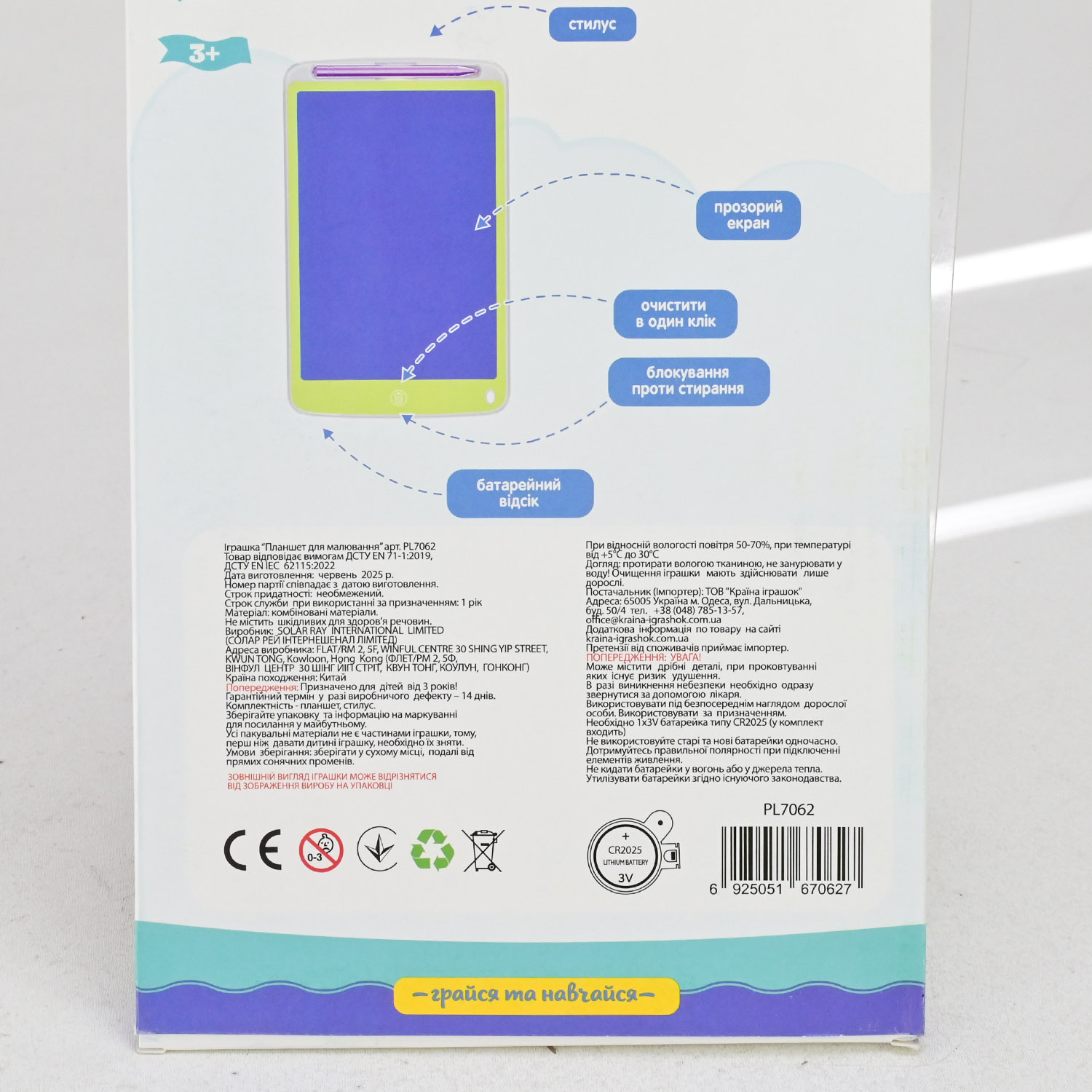 Планшет для малювання LCD Грайся та навчайся арт. PL7062 (100шт) екран 8,5″ короб. 15*11*23см