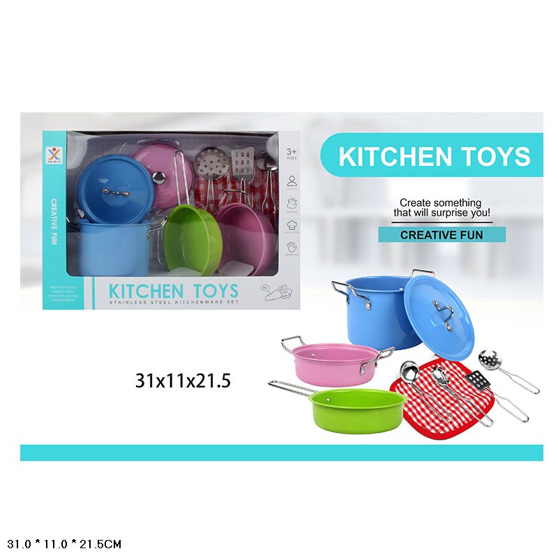 Посуд набір арт. 988-B5 (48шт/2) 10 предметів, петельні, кастрюля, кришки, аксес короб. 31*11*21,5см