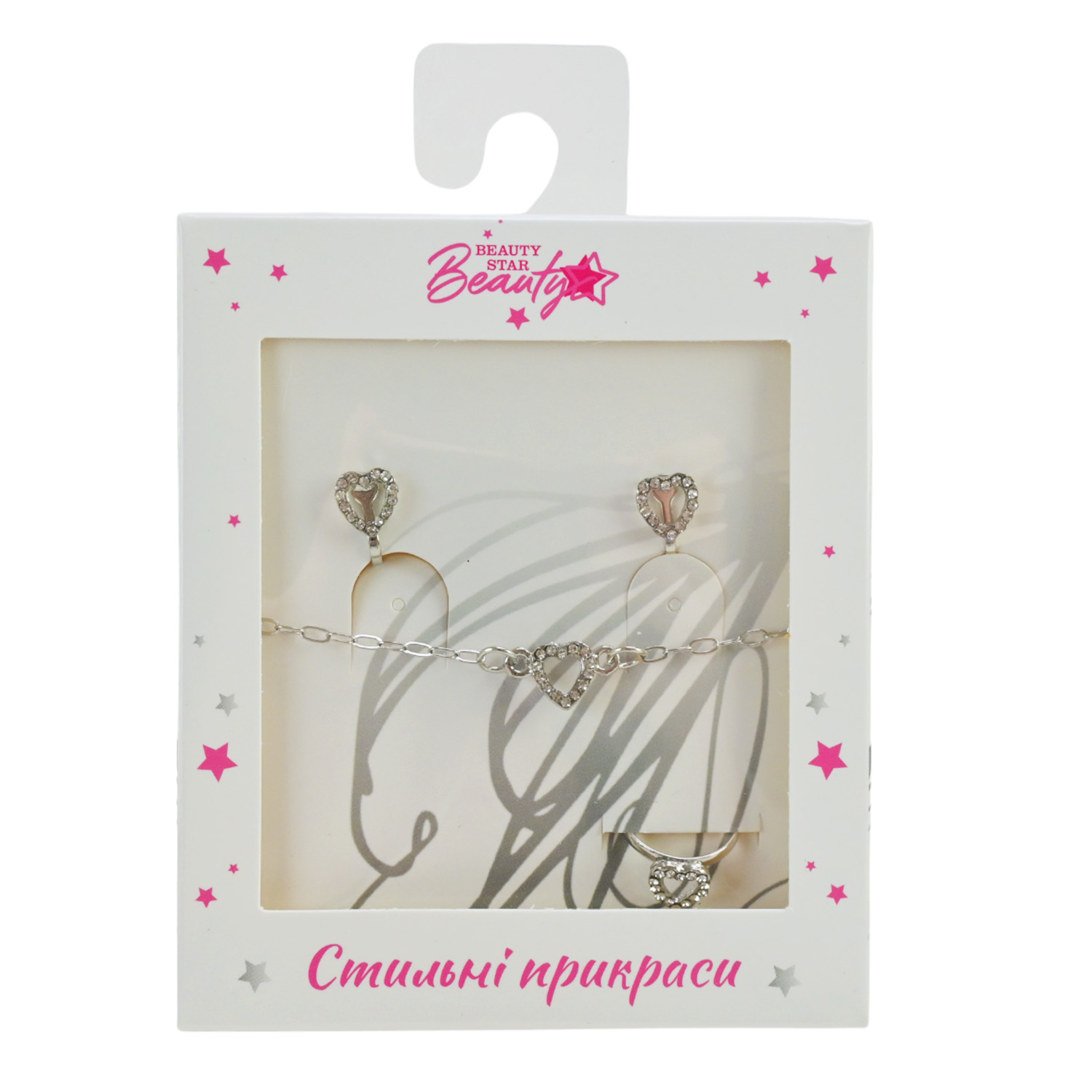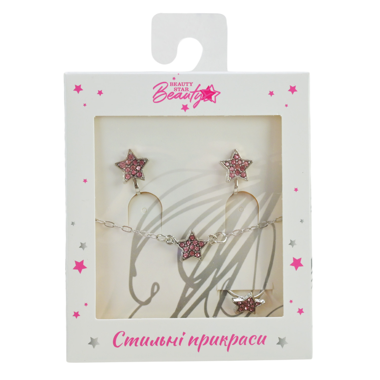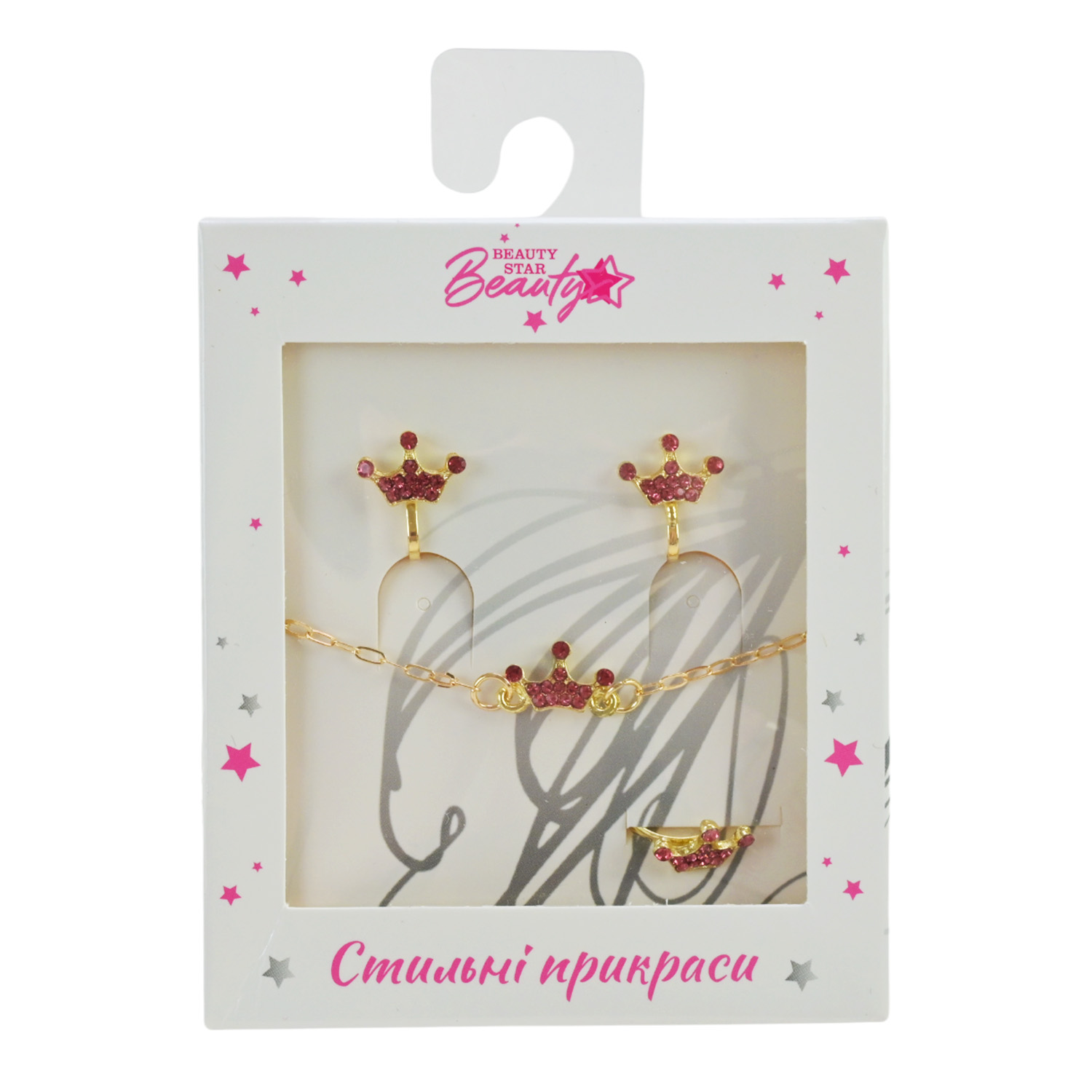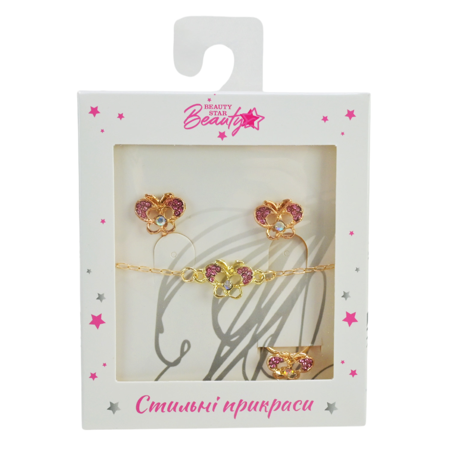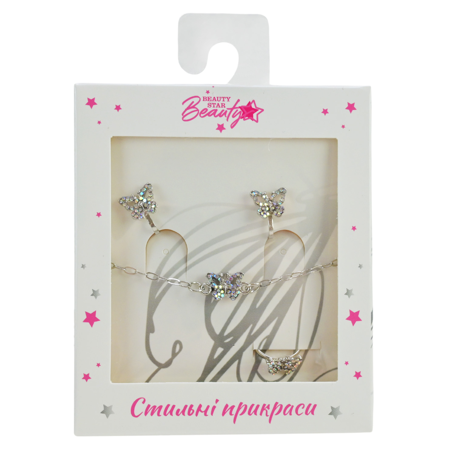Прикраси набір Beauty Star арт. PL-524-403 (108шт) мікс 8 видів, сет 3 в 1, браслет, кліпси, кільце(змінюе розмір) зі стразами короб. 10*7*1,5см