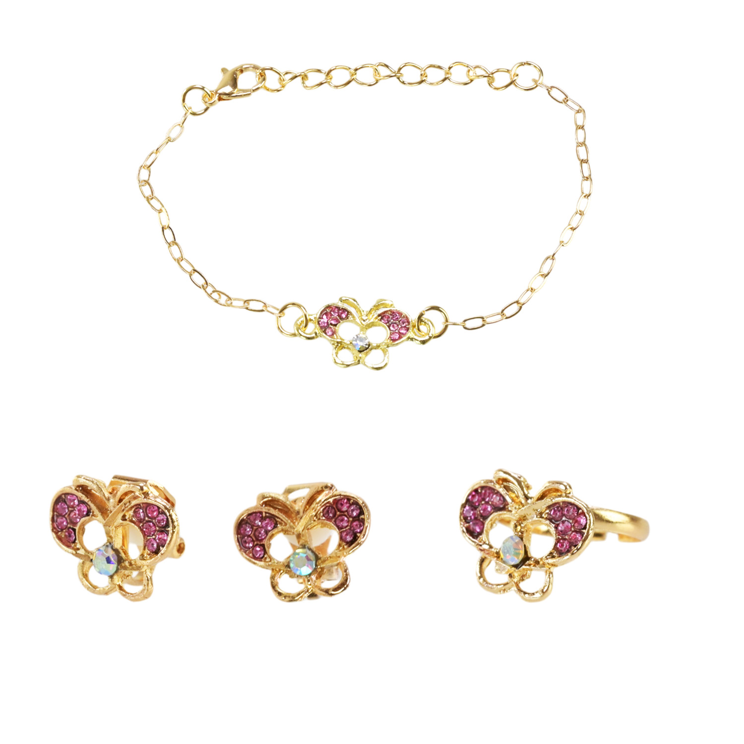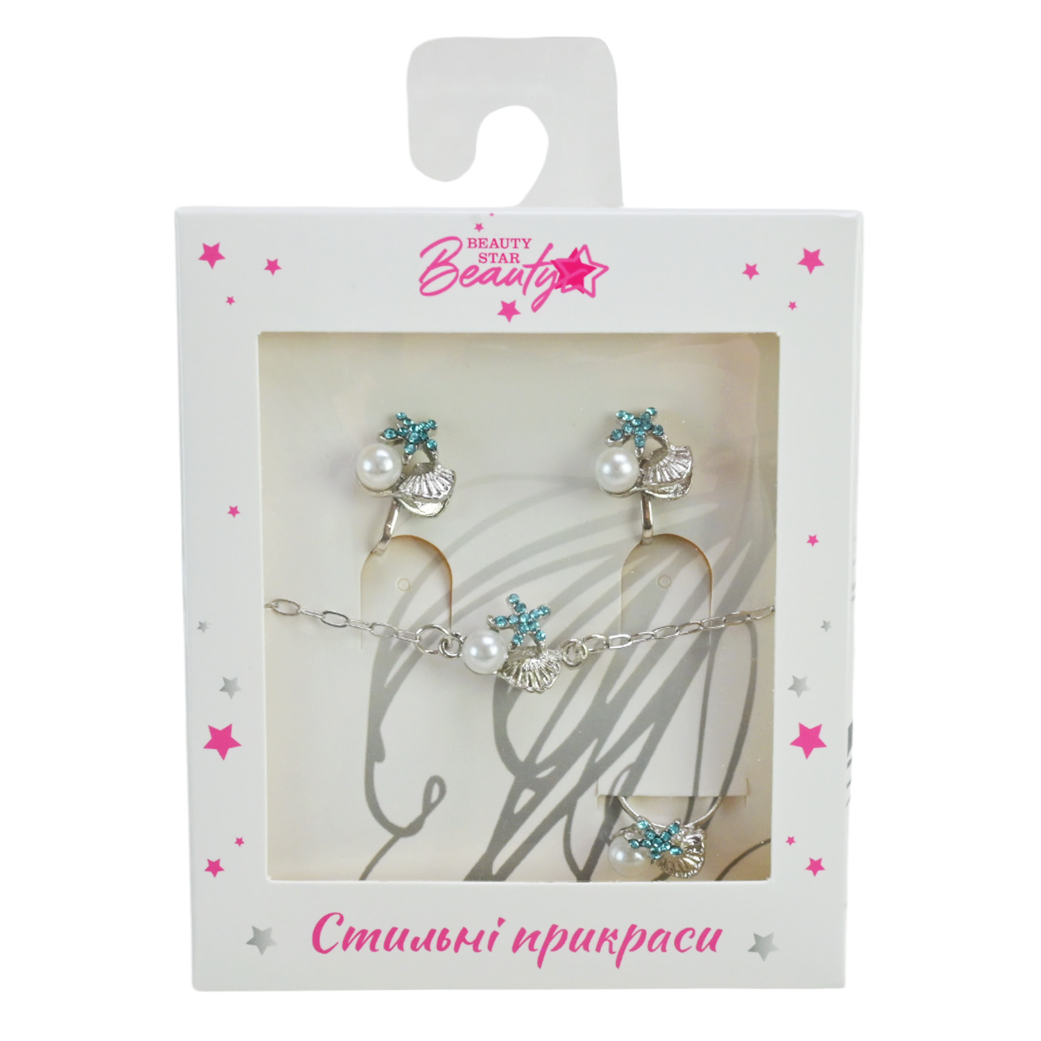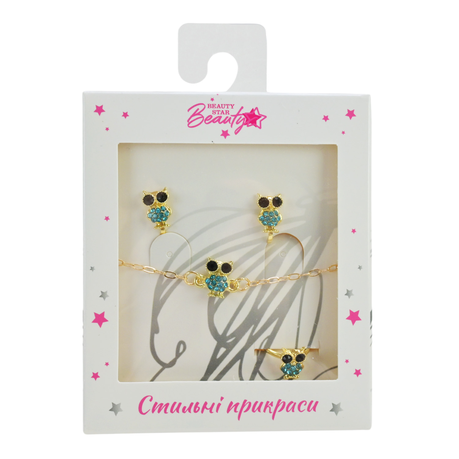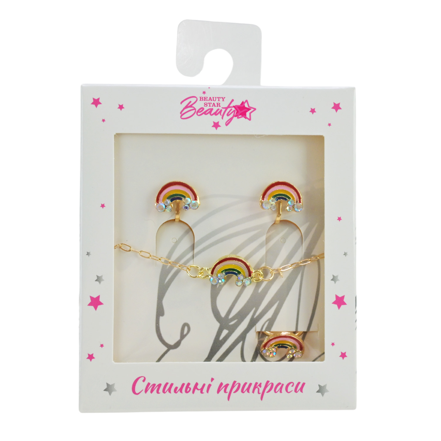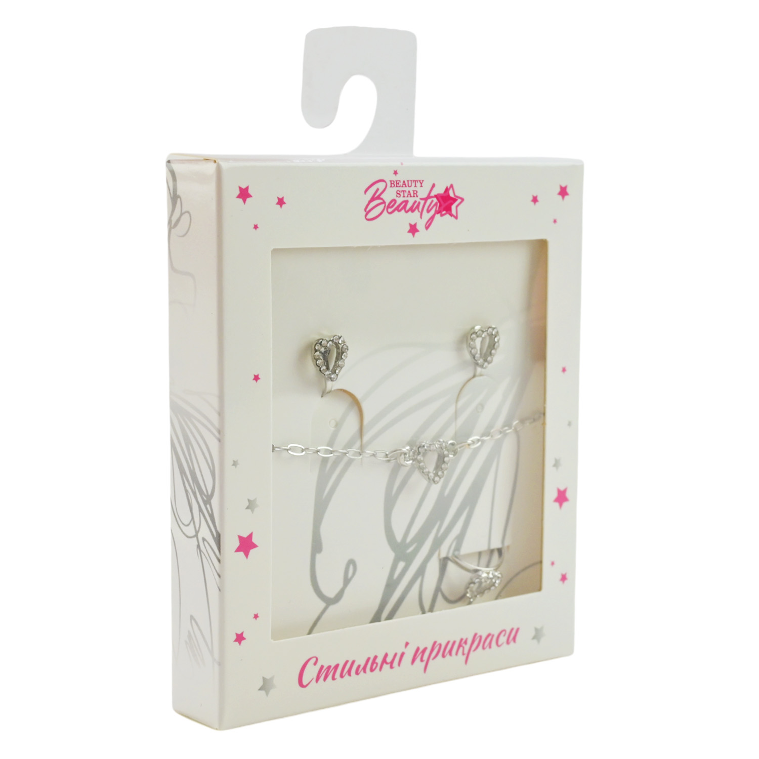 Прикраси набір Beauty Star арт. PL-524-403 (108шт) мікс 8 видів, сет 3 в 1, браслет, кліпси, кільце(змінюе розмір) зі стразами короб. 10*7*1,5см