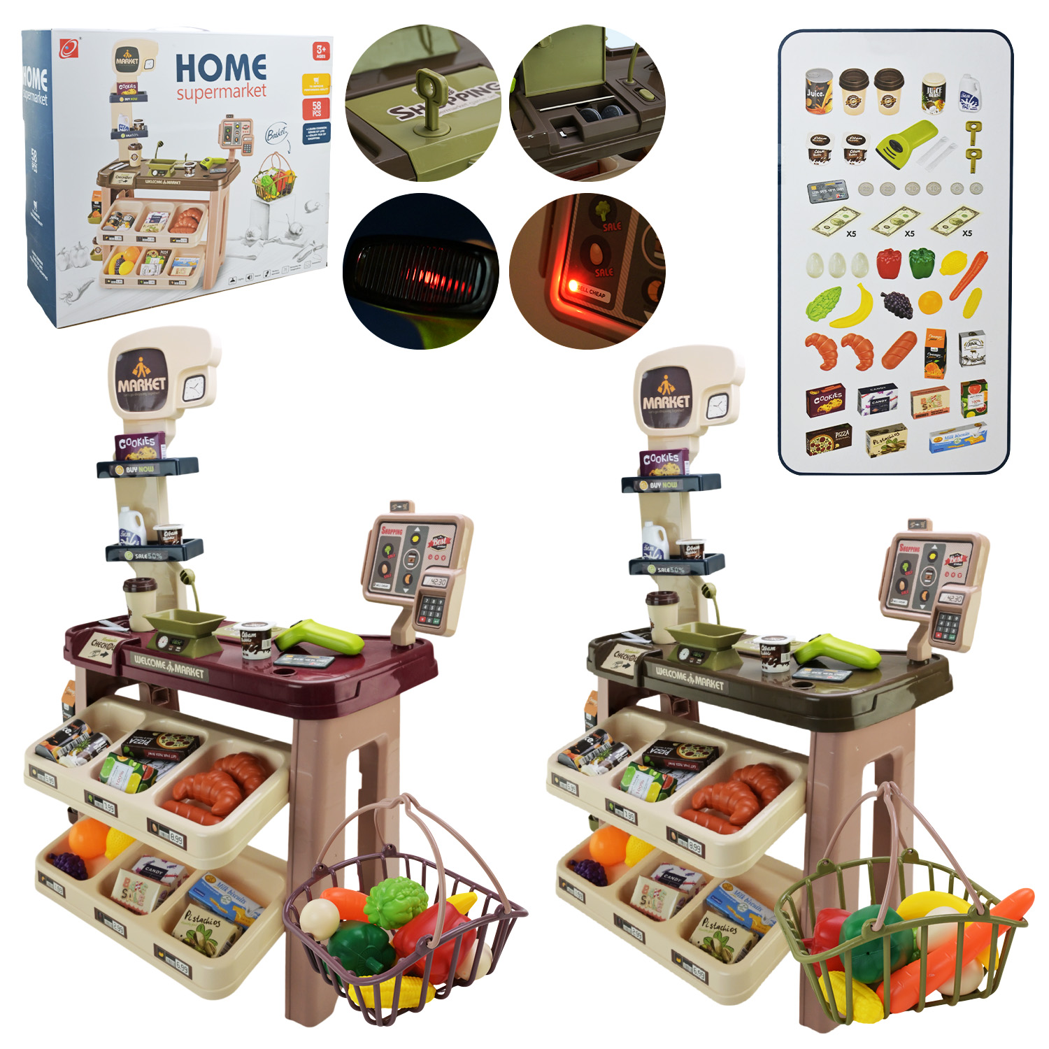 Супермаркет набір арт. 668-113/114 (8шт) батар. мікс 2 види, світло,звук, аксес короб. 54*16*45