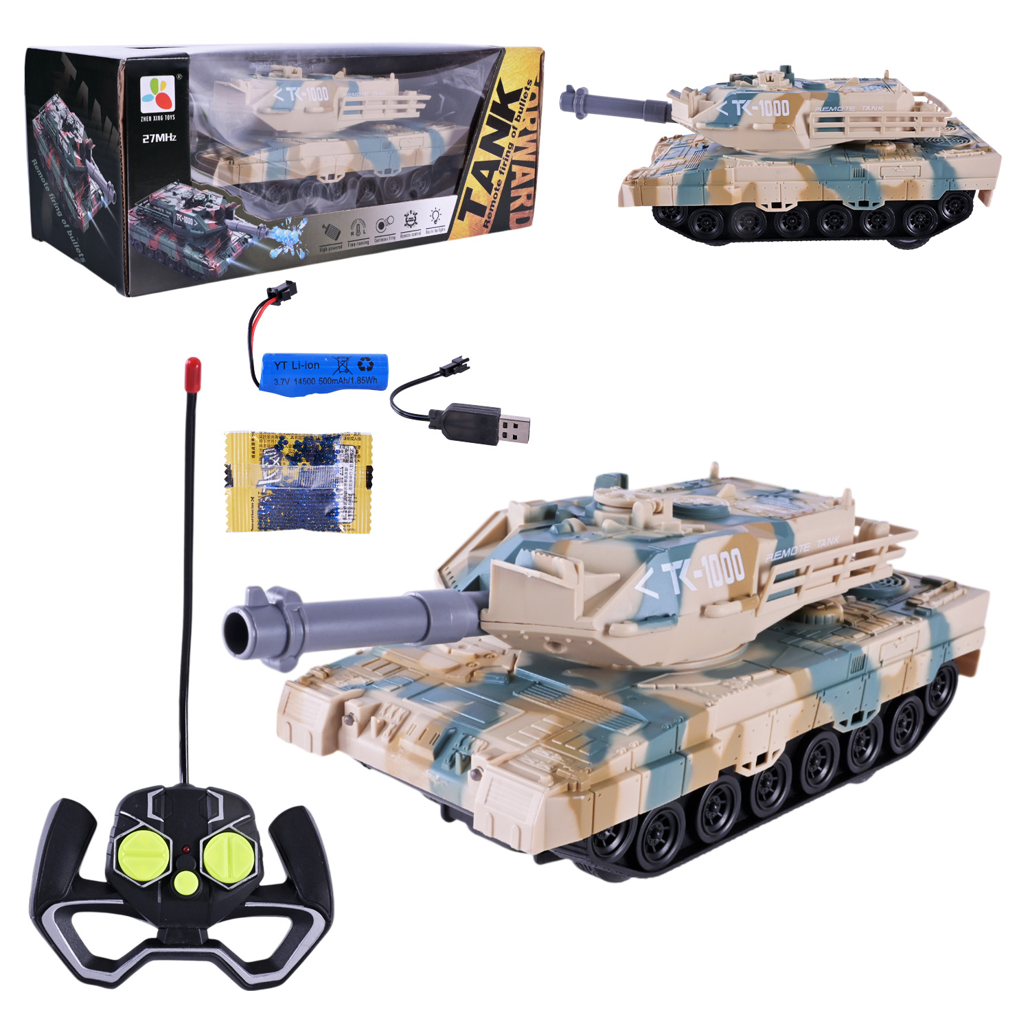 Танк р/к арт. 233-7A (48шт/2) батар 2кольора,акум.,стріляє гелевими кульками, короб. 30,5*14*12см