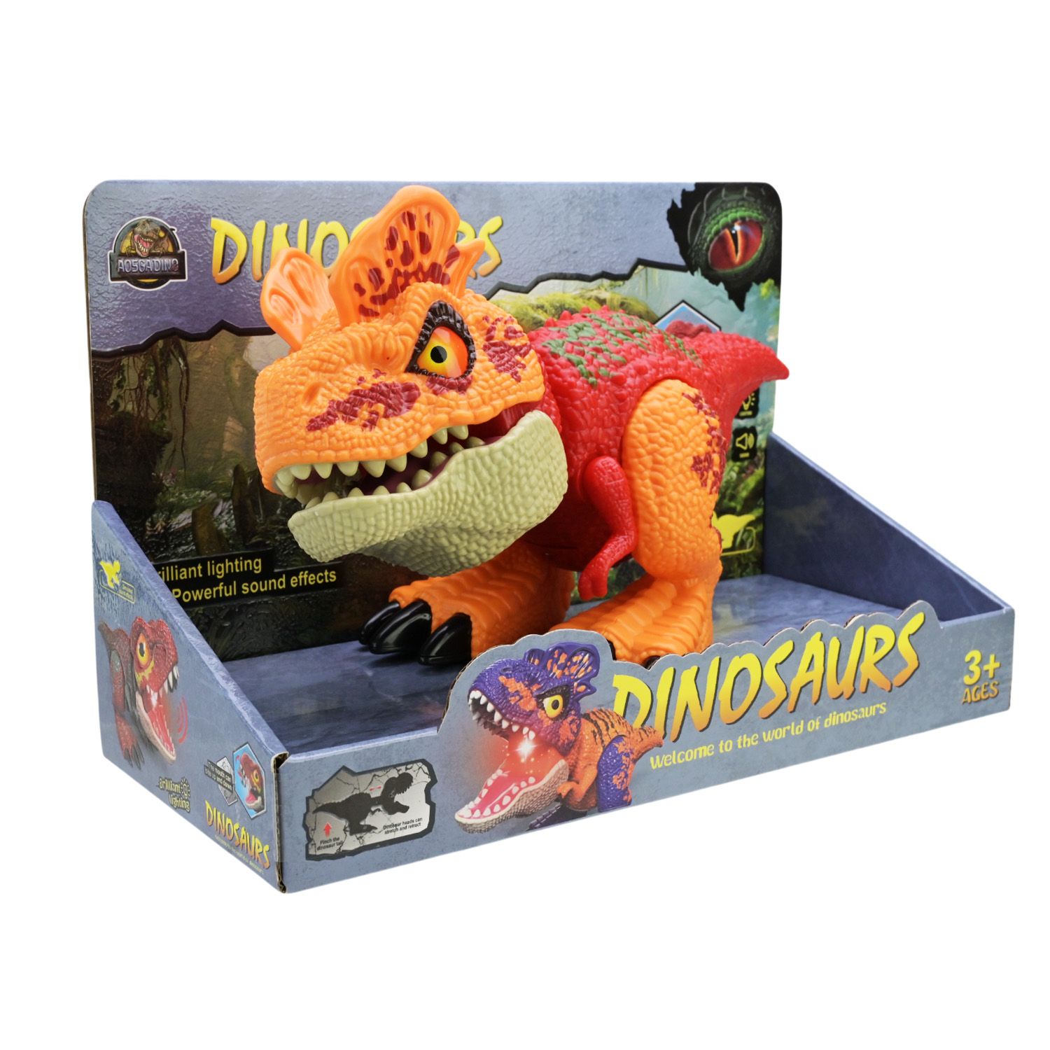 Тварина динозавр арт.QX044 (48шт) 2 кольри мікс, батар, світло, звук, р-р 11*26,5*13см у короб. 27*12*17 см.